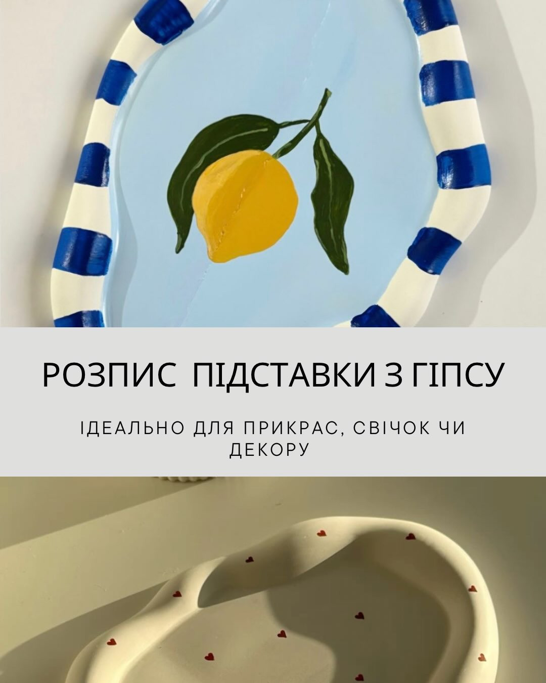 Запрошуємо на майстер-клас з розпису гіпсової підставки. Це популярний вид арт-терапії та хобі, який дозволяє перетворити звичайну білу форму на унікальний елемент інтер'єру або персоналізований подарунок.
