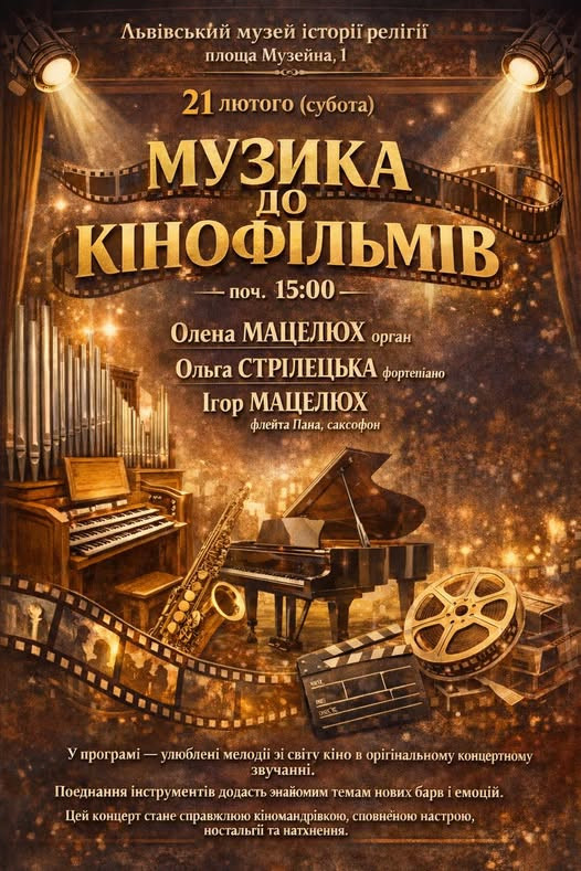 Музика, що стала голосом легендарних фільмів, прозвучить по-новому — глибоко, емоційно та натхненно. Поєднання органа, фортепіано, флейти Пана та саксофона створить неповторну атмосферу кіномандрівки, наповненої ностальгією, романтикою й яскравими враженнями.