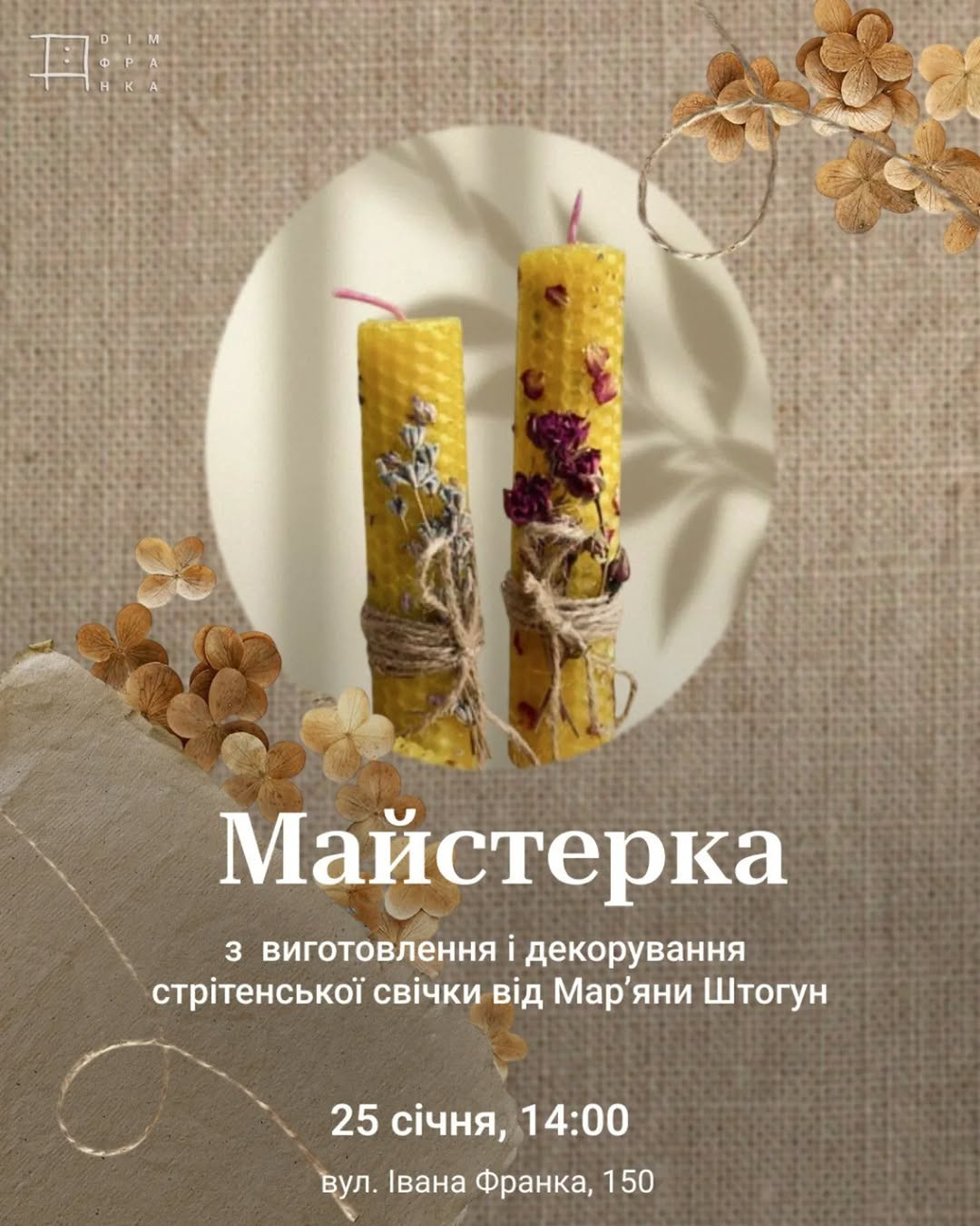 Уже традиційно напередодні Стрітення Господнього кличемо всіх охочих у Дім Франка на майстер-клас з виготовлення головного атрибуту цього свята!