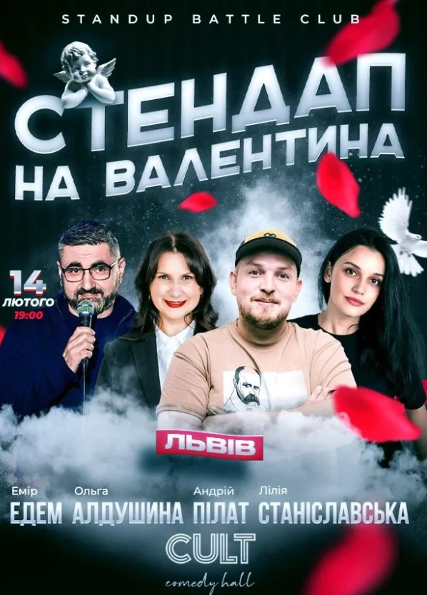 На вас чекає вечір гумору, легких жартів, щирого сміху та атмосфери, куди хочеться повертатися. Ідеальний план на День закоханих без зайвого — зате з емоціями!