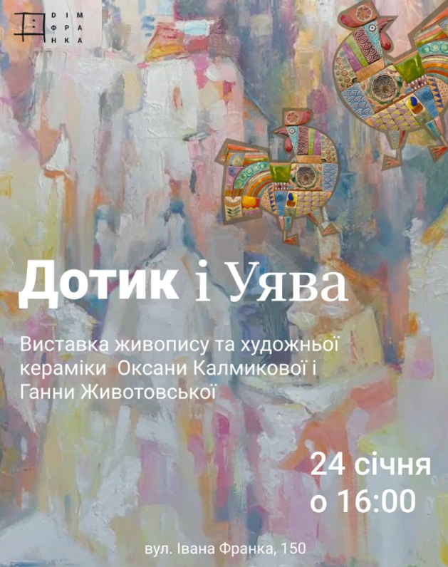 Дім Франка запрошує відвідати виставку "Дотик і уява" — подію, що поєднує дві різні виставки двох товаришок-мисткинь, представлені у двох окремих залах.