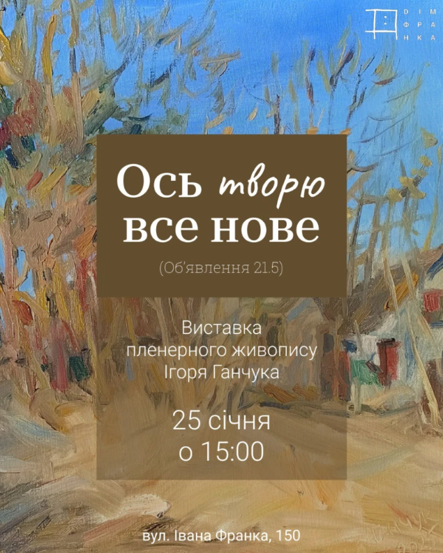Щиро запрошуємо відвідати персональну виставку пленерного живопису Ігоря Ганчука "Ось творю все нове".