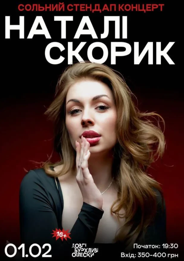 Сольний концерт Наталі Скорик — це чесний, гострий і дуже впізнаваний стендап про життя без фільтрів. Тут будуть жарти про стосунки, побут, внутрішні суперечності й ті думки, які ми зазвичай тримаємо при собі. Наталі вміє смішно говорити про складне, легко — про незручне і влучно — про кожного з нас.