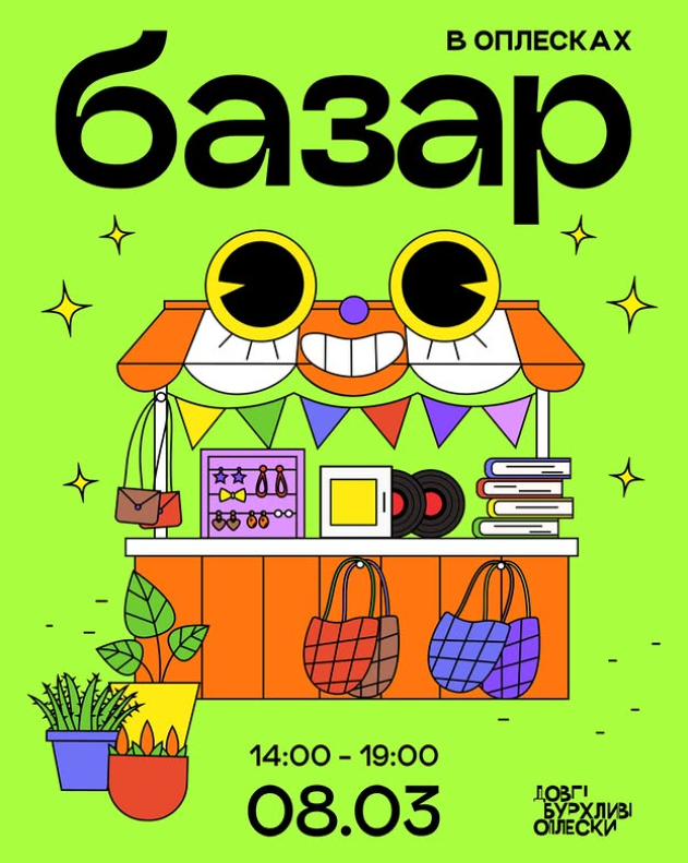 "Оплески Базар" — це камерний маркет в "Оплесках", де зазвичай проходять стендап-шоу та тематичні вечірки.