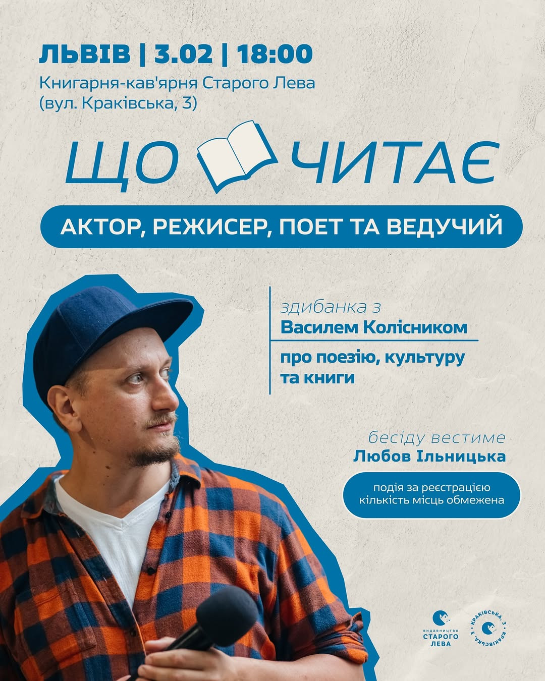 Що читає актор, поет, режисер та ведучий? Поговоримо про це на зустрічі.
