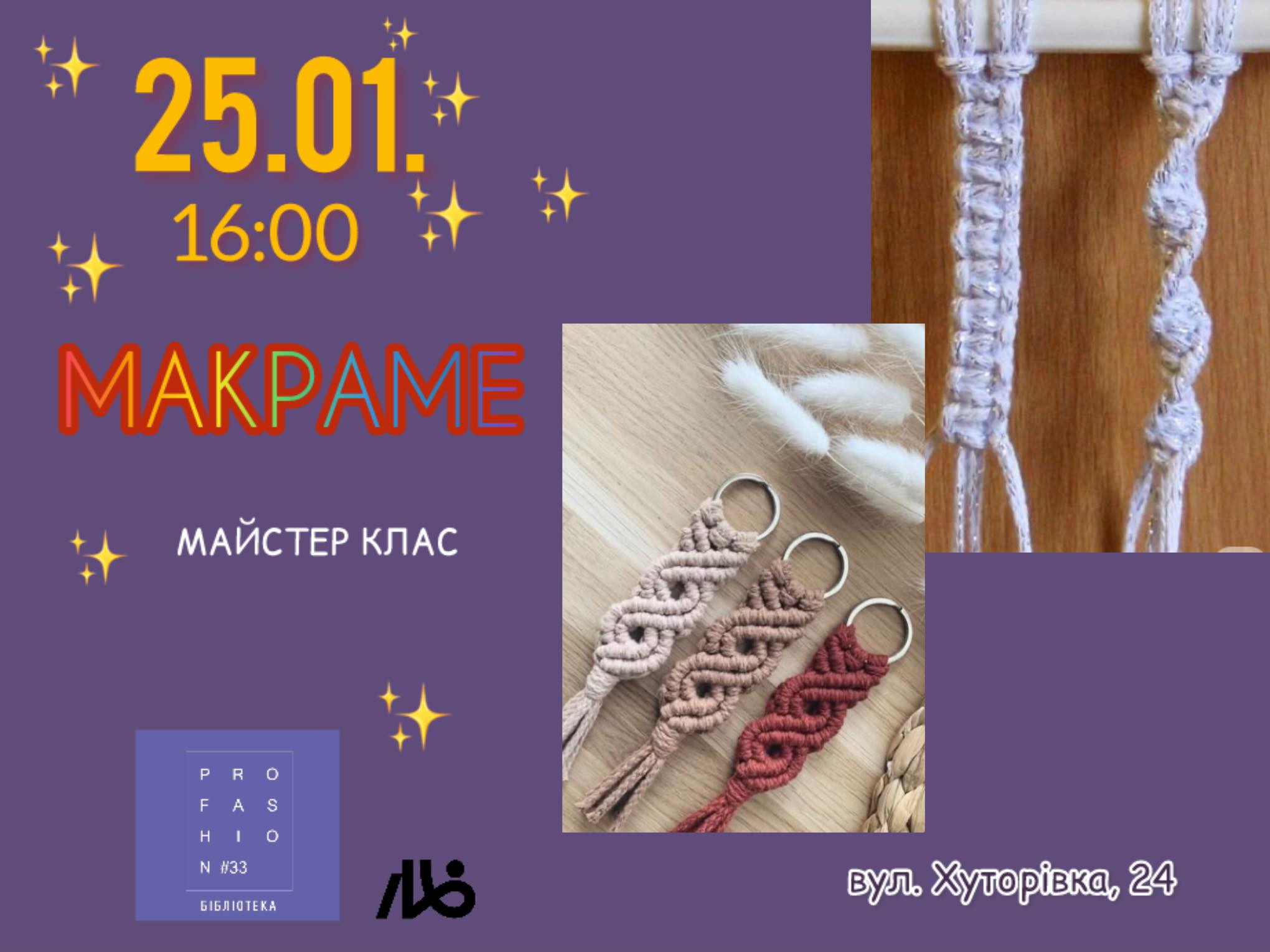 Що взяти з собою: Бажано захопити ваші улюблені нитки для макраме (тих кольорів та фактур, які вам найбільше до вподоби).