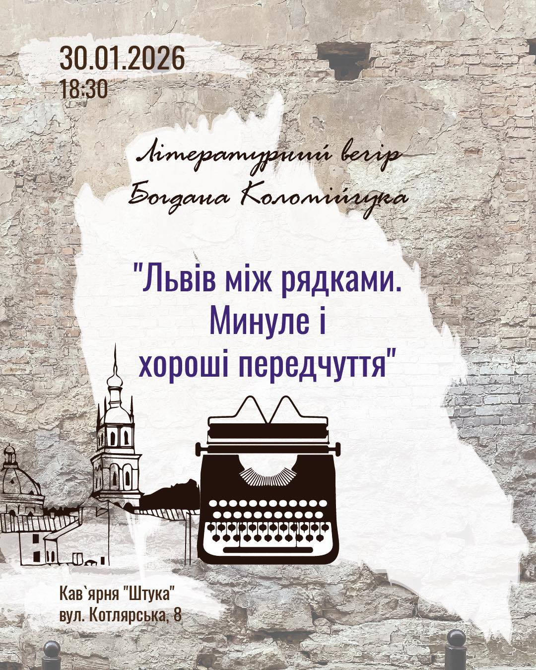 Літературний вечір Богдана Коломійчука "Львів між рядками. Минуле і хороші передчуття" у місті Львів