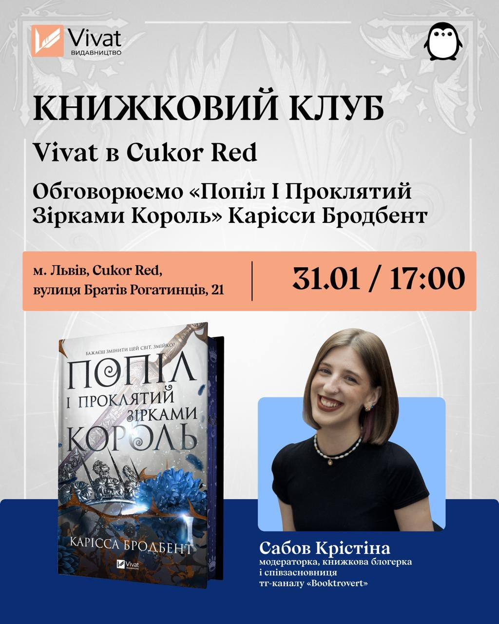 Обговорення книги "Попіл і проклятий зірками король" Карісси Бродбент у місті Львів