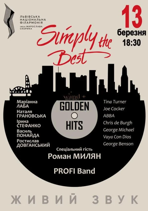 Запрошуємо на концерт золотих хітів "Simply the Best", який відбудеться в межах програми Європейського культурного обміну.