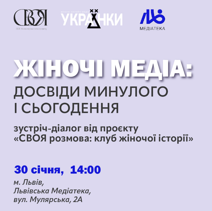 Запрошуємо на першу зустріч проєкту "СВОЯ розмова: клуб жіночої історії". На вас чекає не просто зустріч, а діалог жіночих поколінь про історію жіночих платформ та сторітелінгу, про формати й інструменти, які допомагають жінкам формувати медіапростір.