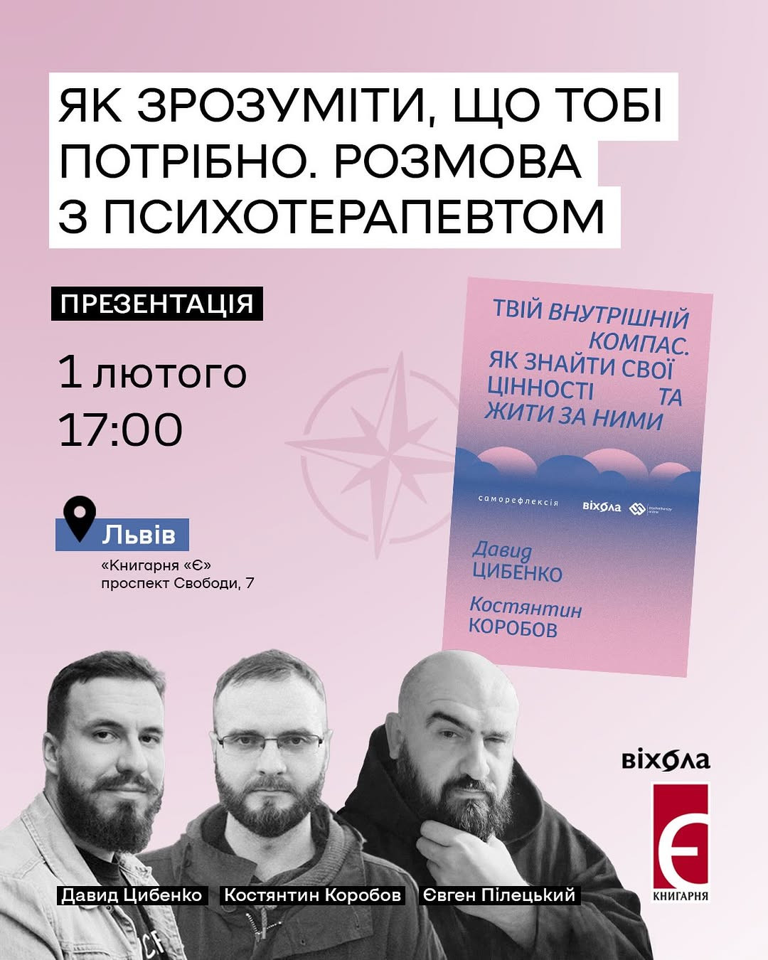 Презентація книжки Давида Цибенка та Костянтина Коробова "Твій внутрішній компас" у місті Львів