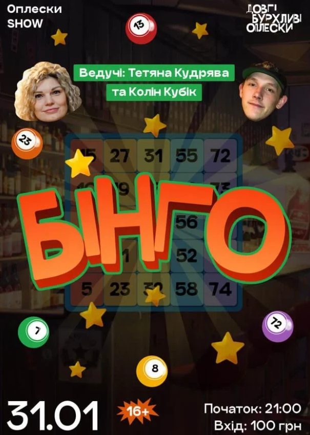 А вечір у Довгих Бурхливих Оплесках - це чудове поєднання азарту й гумору, адже ведучими вечора будуть стендап-коміки Таня Кудрява та Колін Кубік!