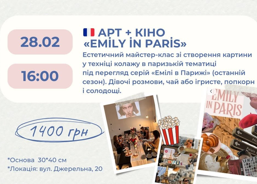Естетичний майстер-клас зі створення картини у техніці колажу в паризькій тематиці під перегляд серій "Емілі в Парижі" (останній сезон).