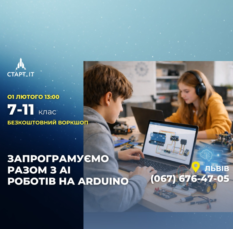 Як поєднуються програмування Arduino та можливості AI? Як виглядає створення робота від ідеї до працюючої моделі? Відповіді на ці запитання школярі отримають під час практичного воркшопу.