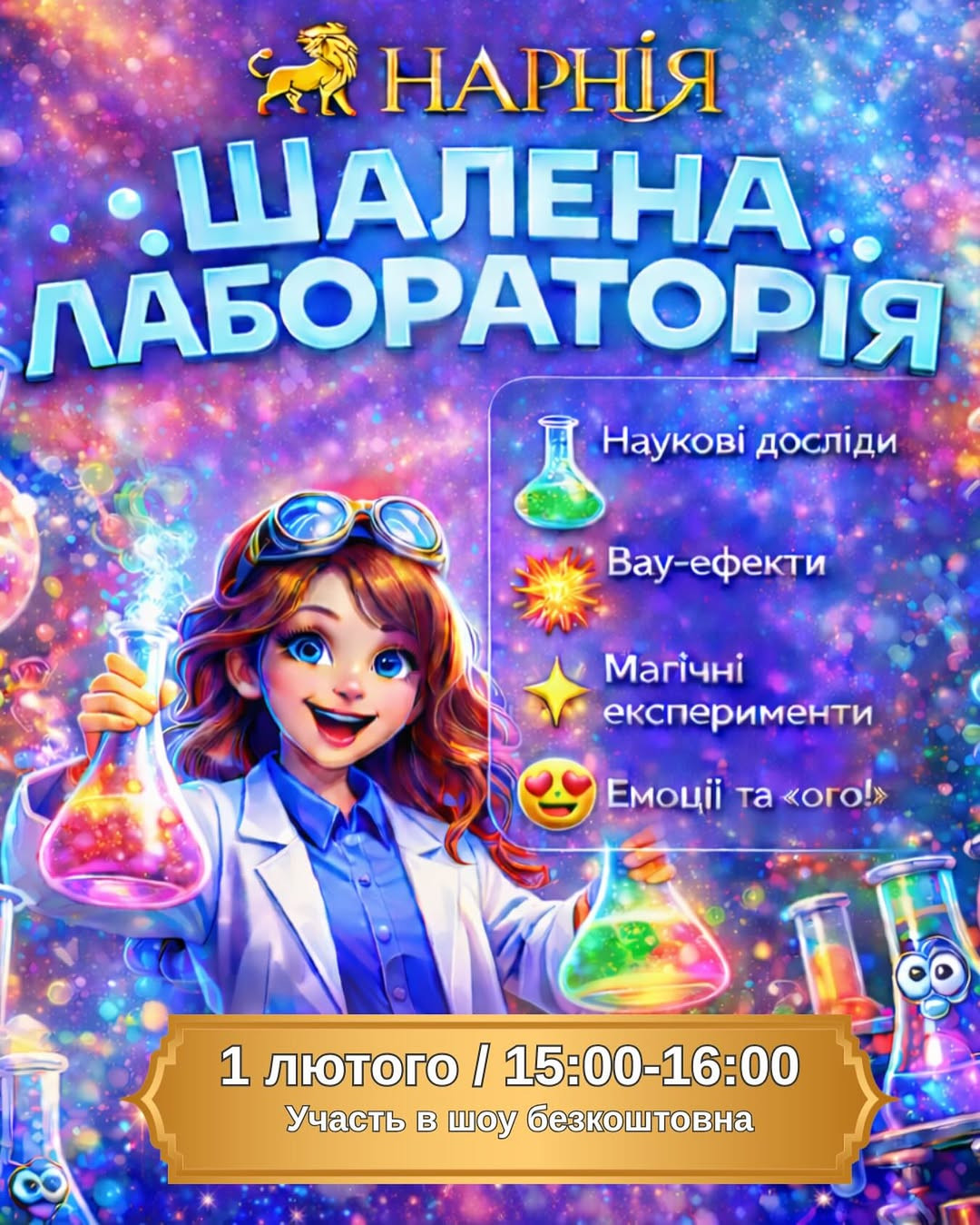 Яскраві досліди та море захвату — діти не просто дивляться, а дивуються, сміються і захоплюються.