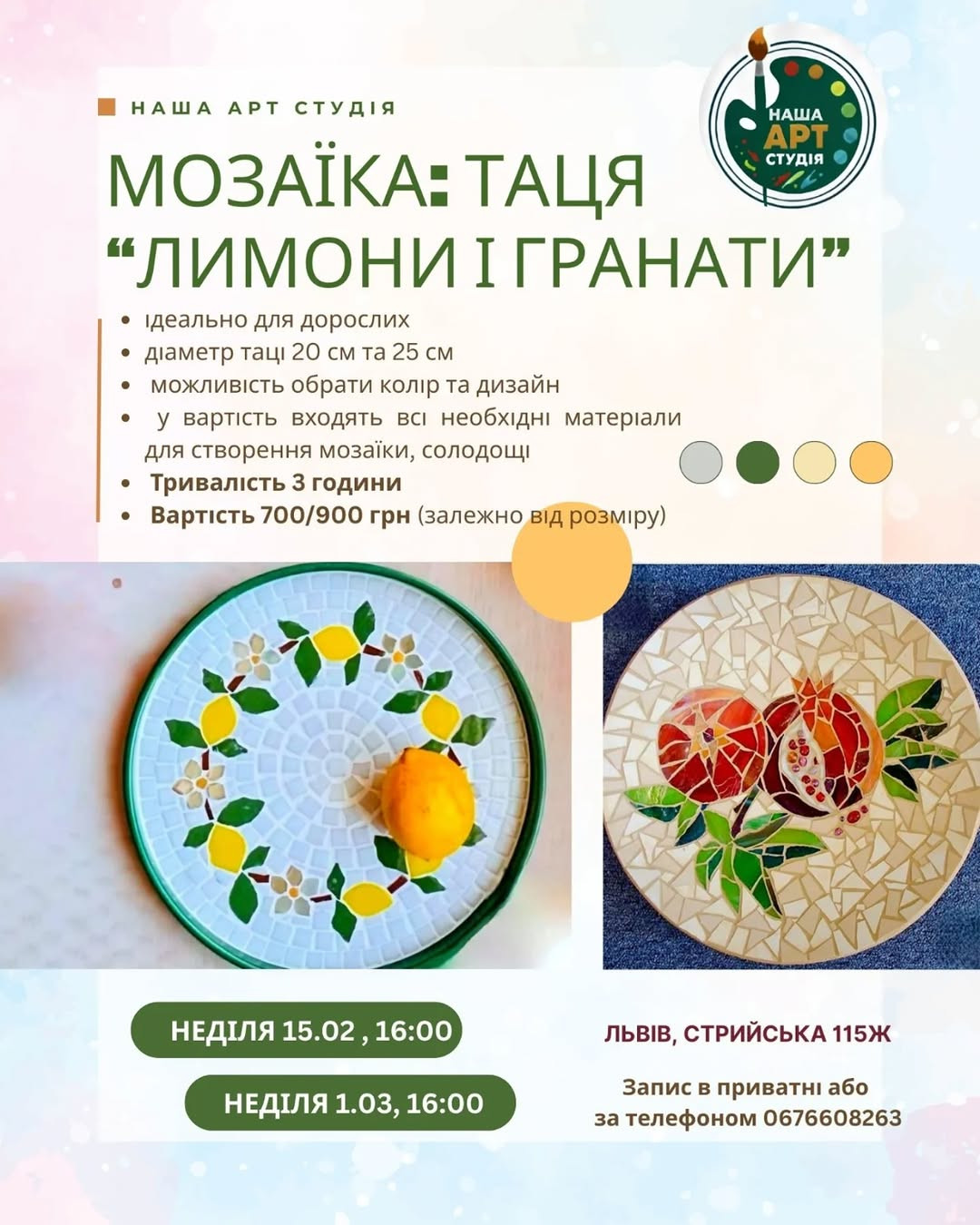 Запрошуємо дітей та дорослих на майстер-клас з мозаїки "Лимони і гранати".