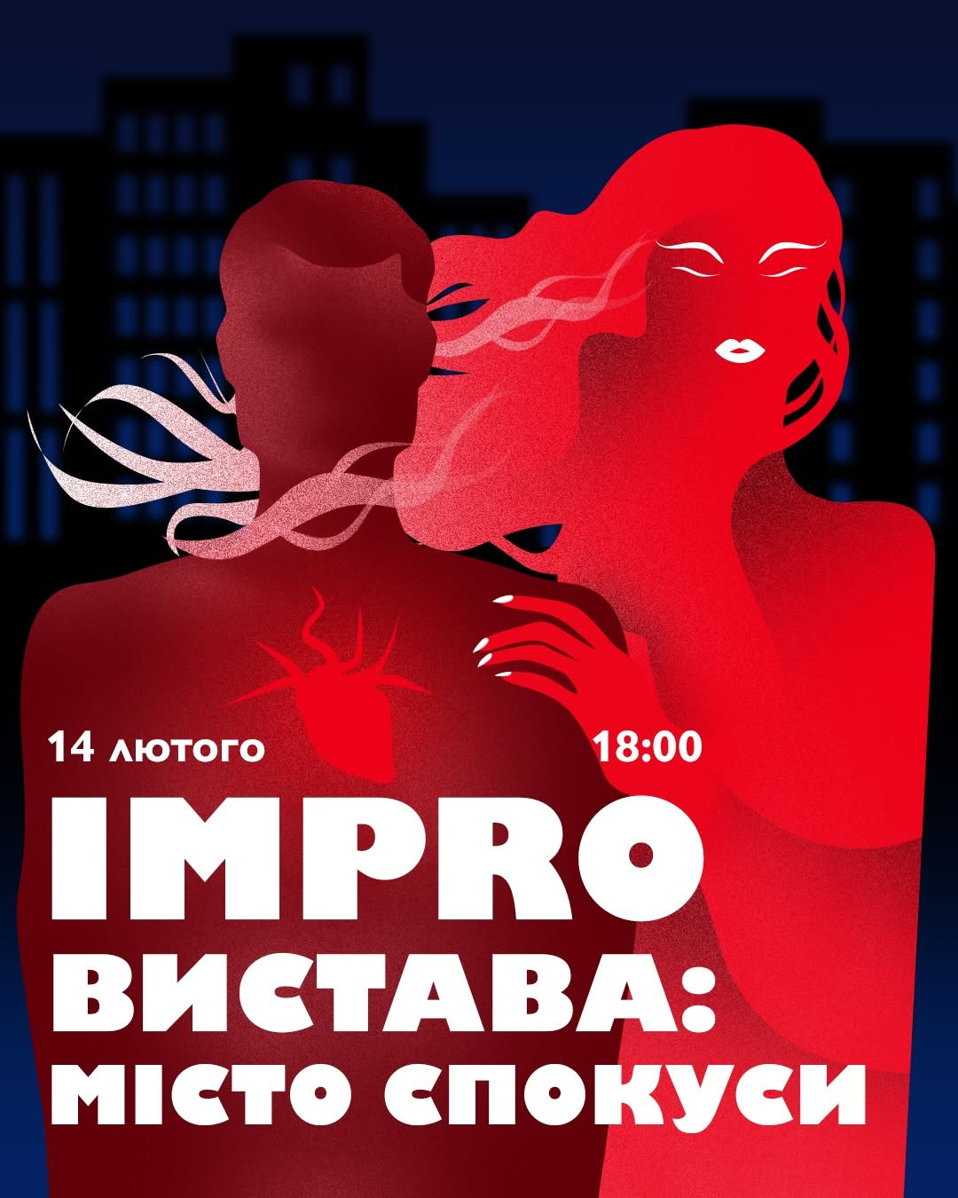 "Місто спокуси" — імпровізаційна вистава у форматі La Ronde, де актори мандрують різними локаціями міста, створюючи історії про потаємні бажання, чуттєвий вибір і напругу між персонажами. Натхнення для їхніх образів і спокус задають глядачі, тож кожна сцена народжується тут і зараз.