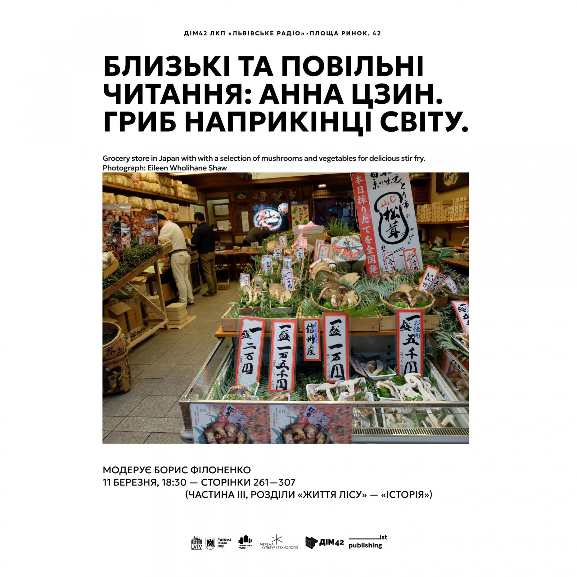 У ДІМ42 ЛКП "Львівське радіо" за модерації Бориса Філоненка тривають Близькі та повільні читання Анни Цзин "Гриб наприкінці світу. Про можливість життя на руїнах капіталізму", видавництва ist publishing.