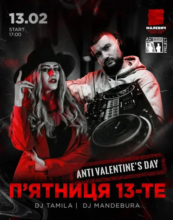 Збираємось у "Малевичі" на Anti Valentine Day, щоб гарно відпочити від рожевих валентинок, солодких балад і питань "ви разом?"