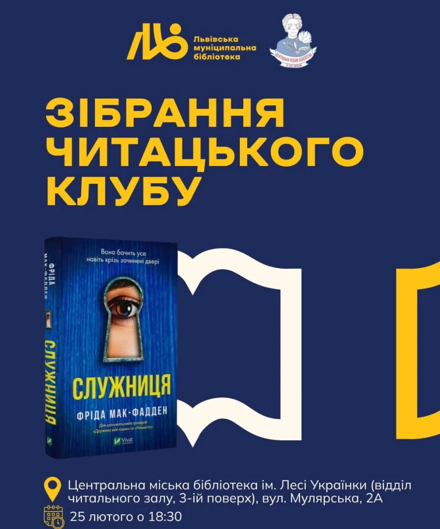 Зібрання читацького клубу за книгою "Служниця" Фріди Макфадден у місті Львів