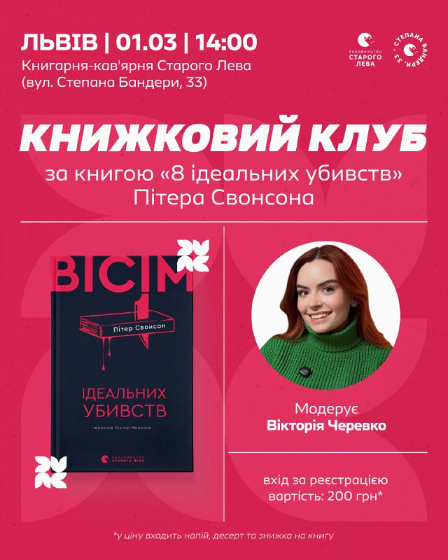 Книжковий клуб за книгою "Вісім ідеальних убивств" Пітера Свонсона у місті Львів