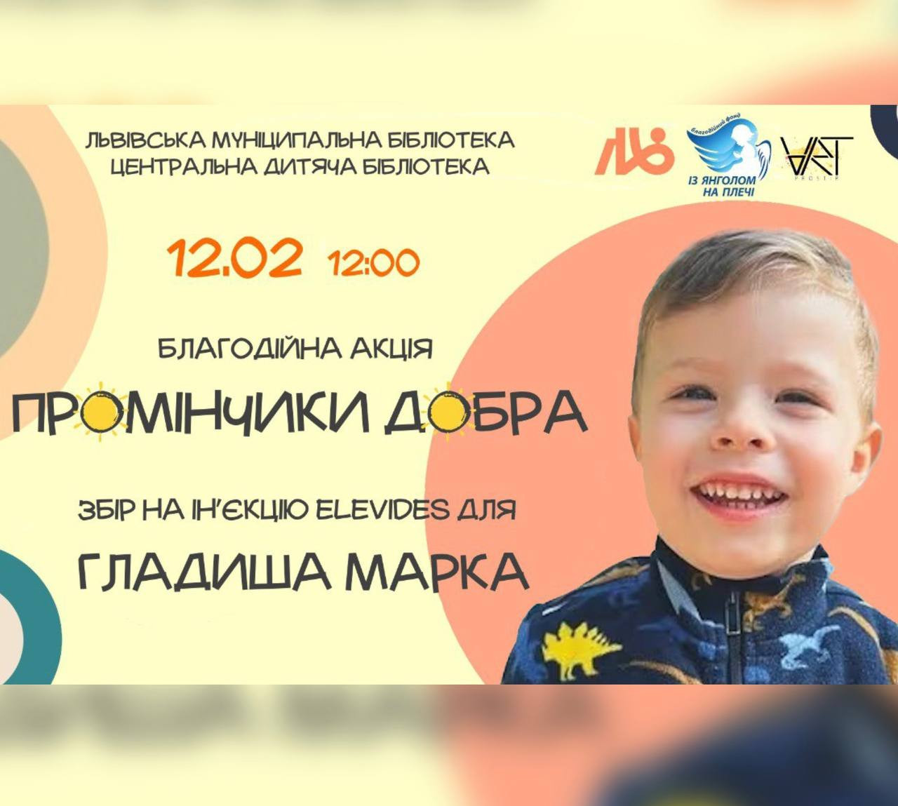 Запрошуємо усіх охочих долучитись до благодійної акції, яка відбудеться в Центральній дитячій бібліотеці, аби підтримати збір коштів на лікування Марка Гладиша.