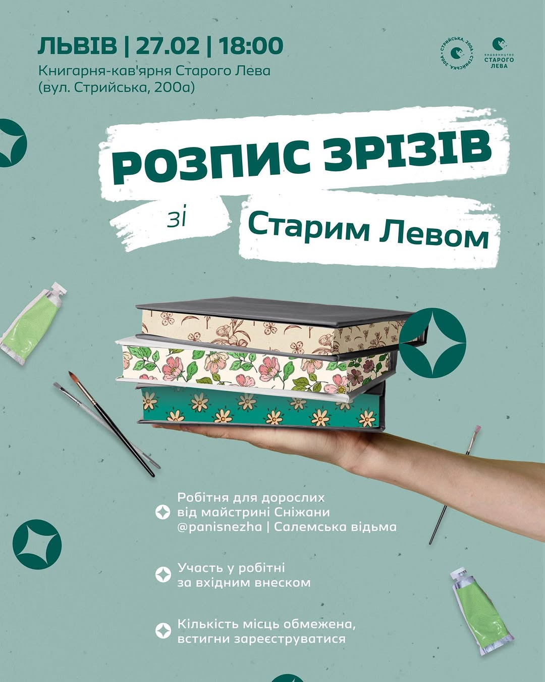Беріть свою улюблену книгу, якій хочете надати особливості і приходьте на робітню з розпису, якій проведе майстриня Сніжана Салемська відьма.