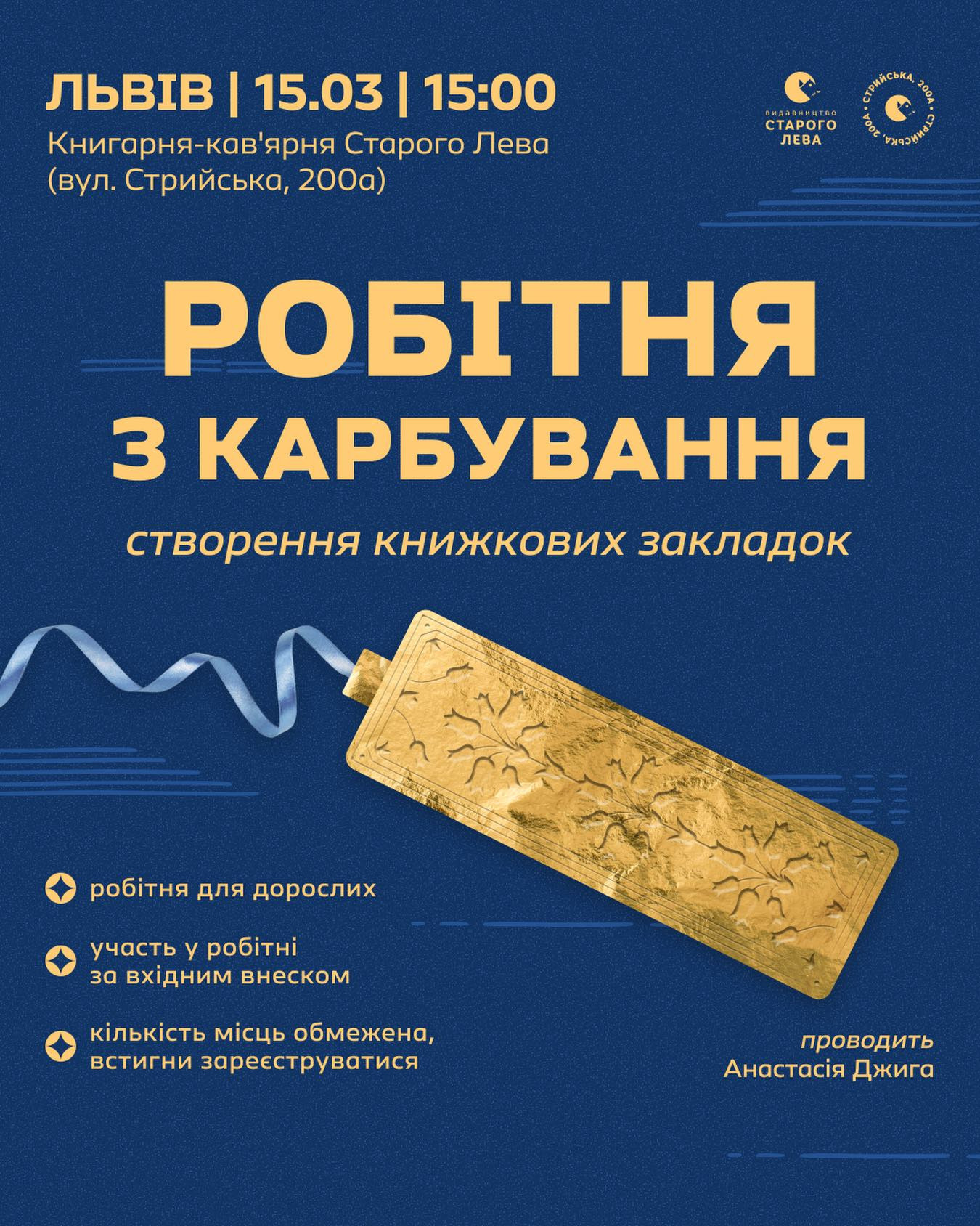 На нашій робітні ми створимо закладки для книг технікою карбування — рельєфні, блискучі й неповторні. Вони стануть маленькими артефактами, які збережуть тепло читання.