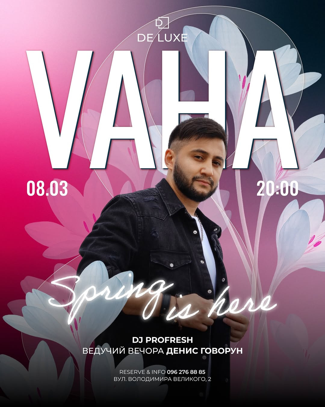 VAHA — співак із грузинським темпераментом і українською душею, який уміє закохувати з першої ноти. Учасник "Голосу України" та "Голосу Грузії", автор і виконавець власних пісень, чий голос упізнають із перших секунд.
