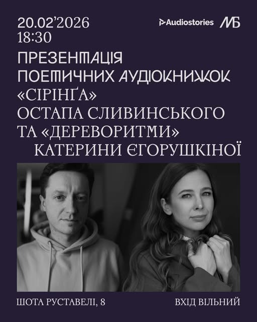 Презентація поетичних аудіокнижок "Сірінґа" Остапа Сливинського та "Дереворитми" Катерини Єгорушкіної у місті Львів