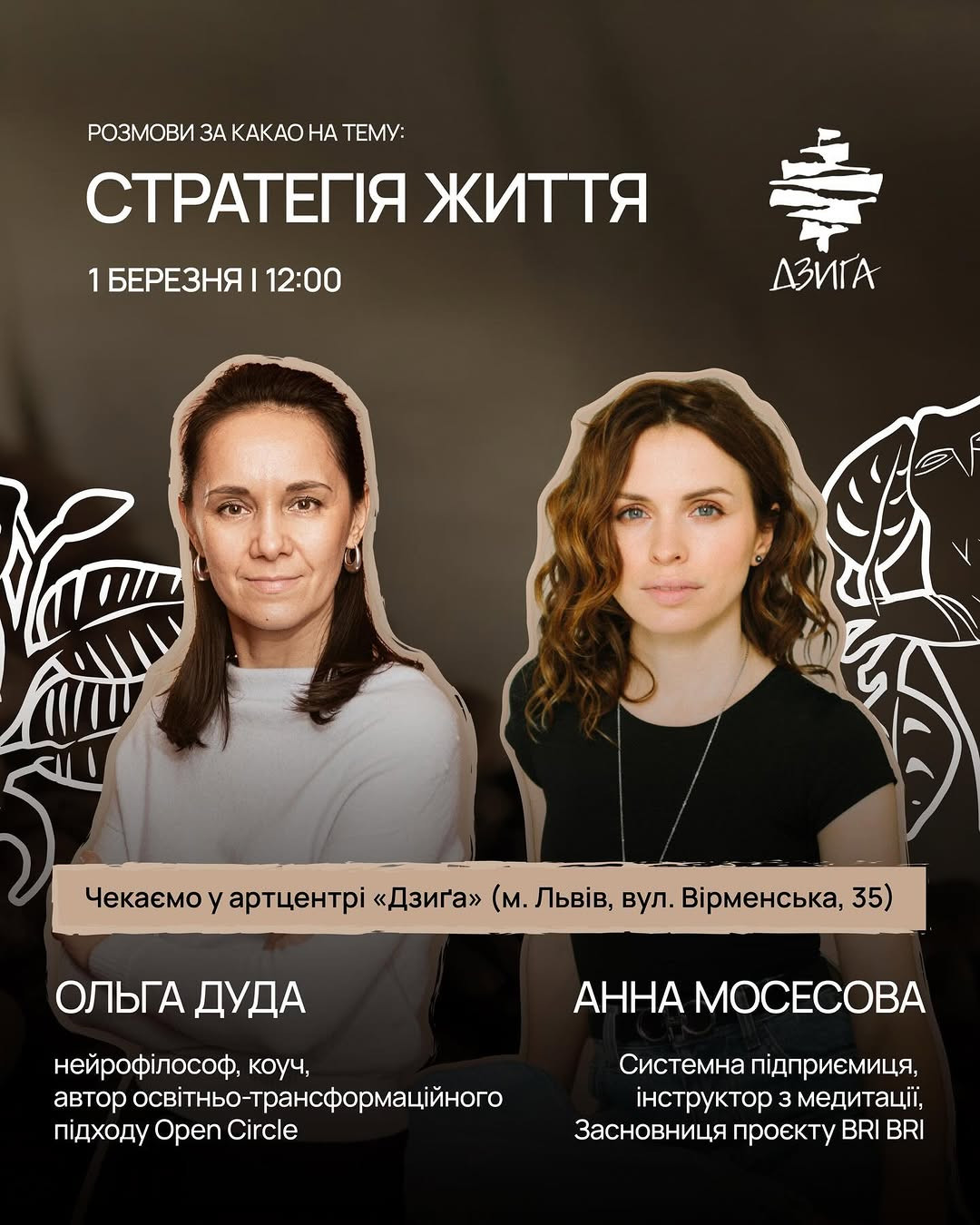 Розмову проведе авторка проєкту "Розмови за какао": підприємиця, інструктор з медитації, засновниця бренду какао BRI BRI, Анна Мосесова.