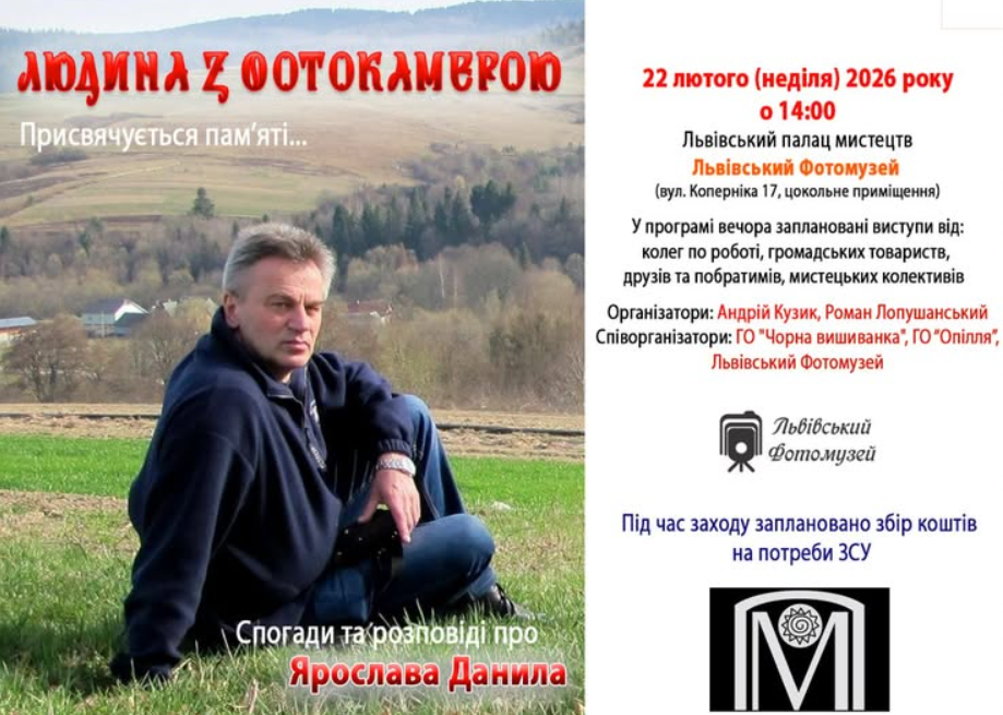 Запрошуємо на вечір пам'яті видатного фотографа та громадського діяча під назвою "Людина з фотокамерою: Спогади та розповіді про Ярослава Данила".