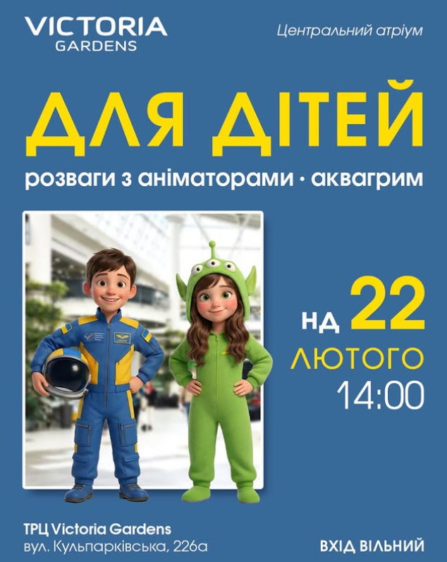 Запрошуємо дітей на космічні розваги з аніматорами у центральному атріумі Victoria Gardens.