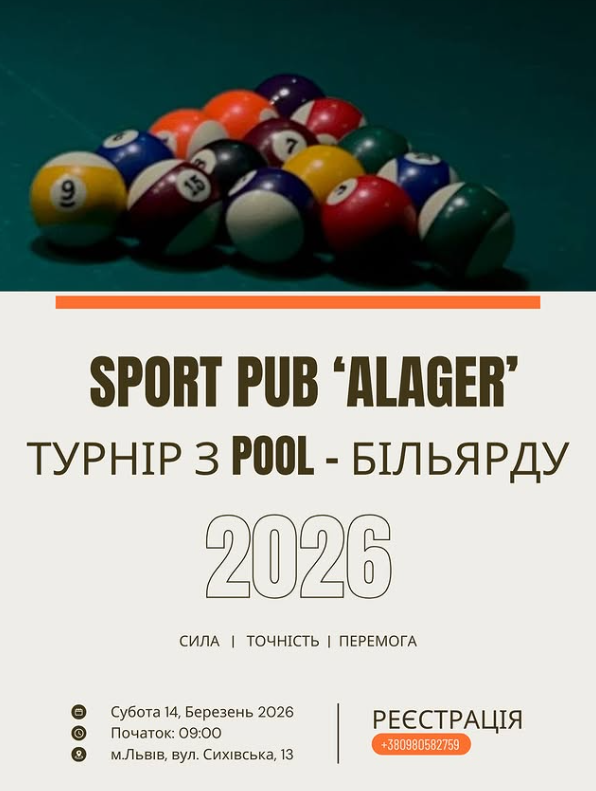 Запрошуємо всіх любителів більярду спробувати свої сили та позмагатися за перемогу.