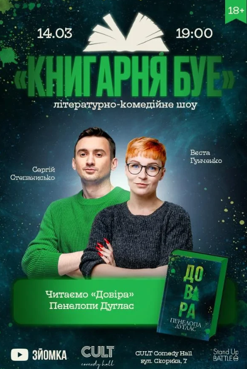 Знімаємо черговий випуск літературно-комедійного шоу "Книгарня Буе". Цього разу коміки Сергій Степанисько і Вєста Гунченко читатимуть темний роман "Довіра" Пенелопи Дуглас про самотність та розмиті межі дозволеного.