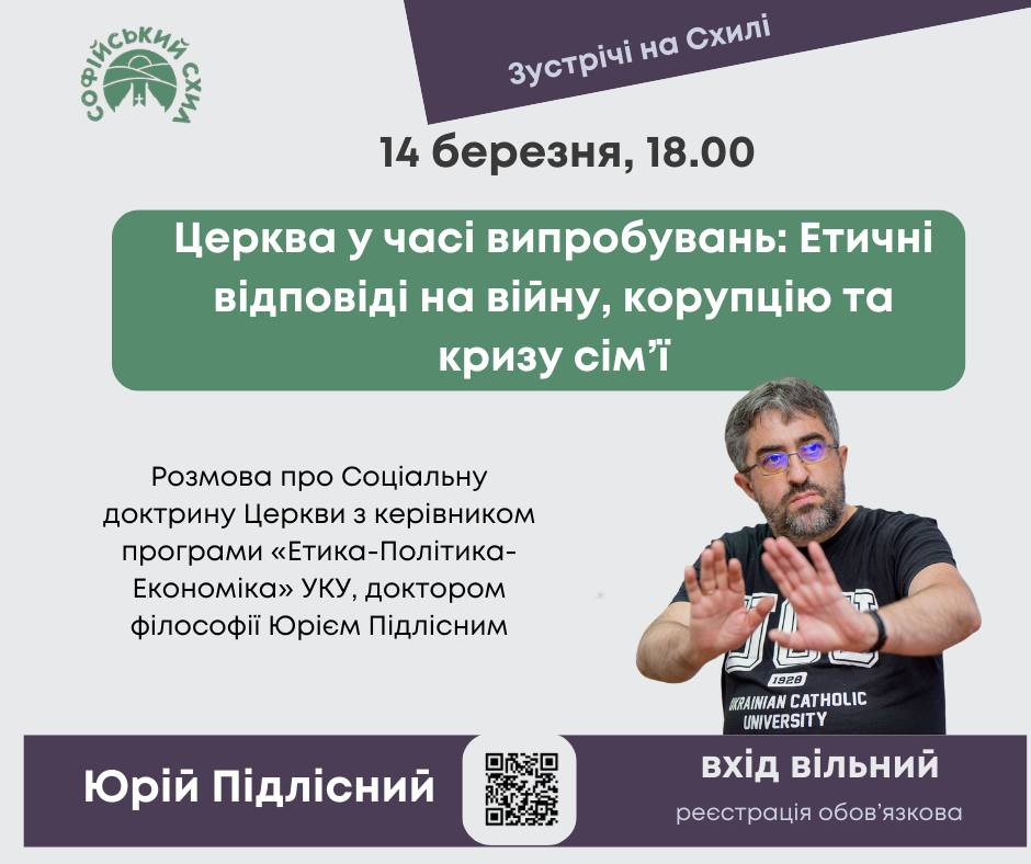 Гість зустрічі: Юрій Підлісний — доктор філософії, завідувач кафедри політичних наук УКУ, керівник програми "Етика-Політика-Економіка" та голова Комісії УГКЦ у справах родини і мирян.