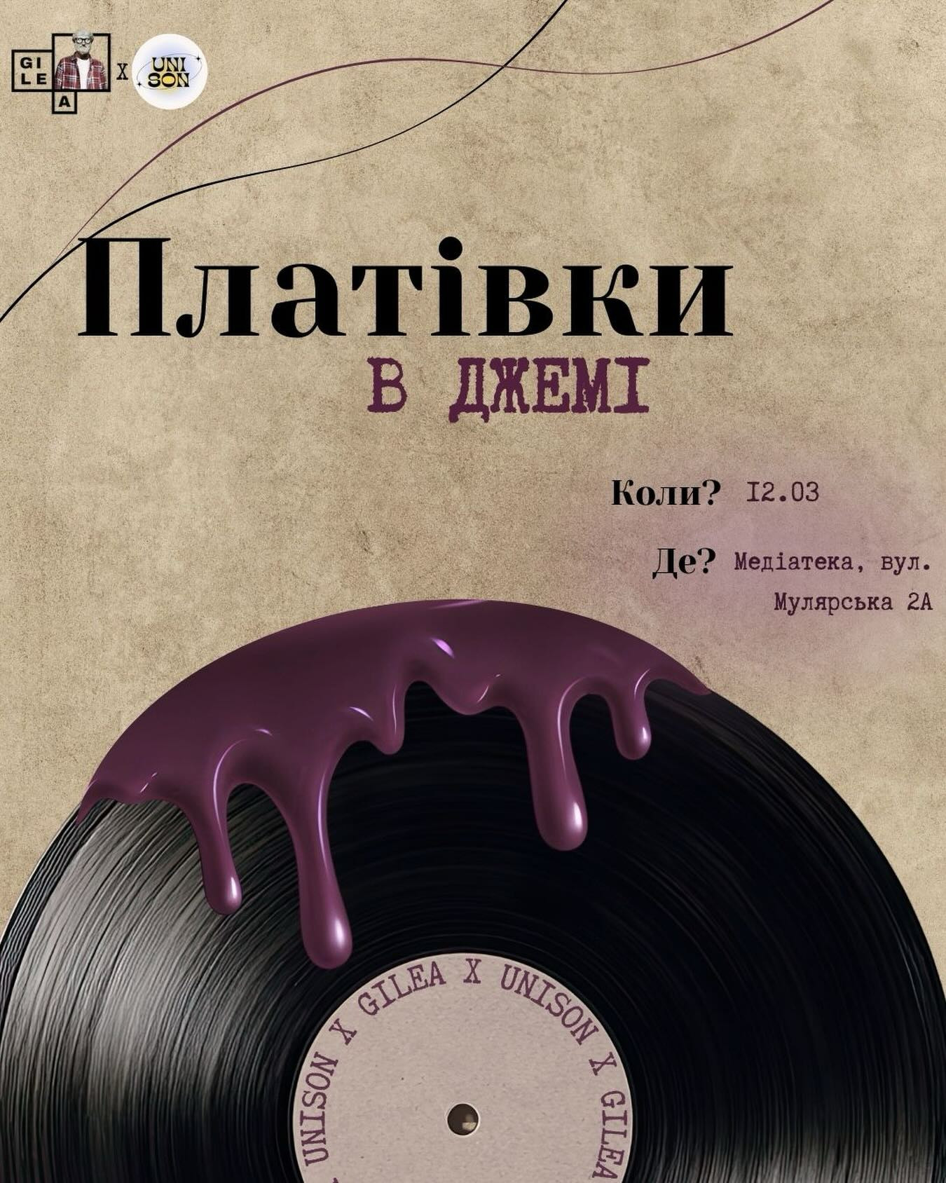 А отак! Спільно малюватимемо фарбами на старих платівках, а потім поджемимо на акустичних музичних інструментах. Разом! Унісон і Гілея об'єднались і запрошують вас в Медіатеку для створення.