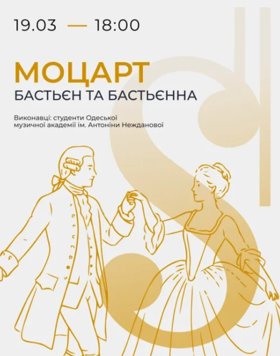Музей Соломії Крушельницької запрошує на одноактну оперу "Бастьєн та Бастьєнна" Вольфганга Амадея Моцарта у виконанні студентів Одеської національної музичної академії імені Антоніни Нежданової