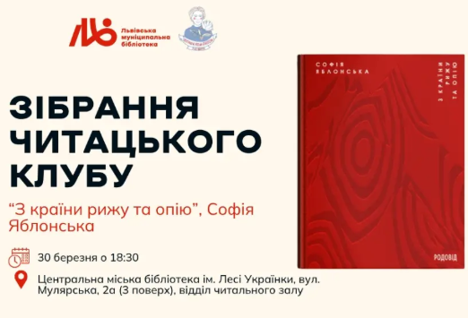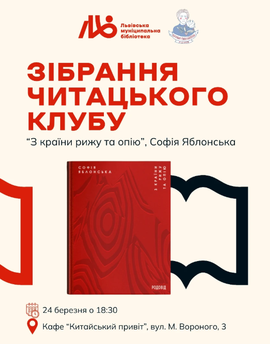 Зібрання читацького клубу за книгою "З країни рижу та опію" Софії Яблонської у місті Львів