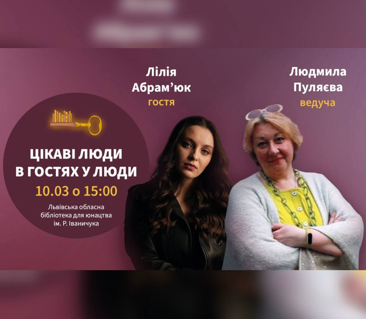 Нарешті в гостях у Людмили Пуляєвої в її авторському проєкті "Цікаві люди в гостях у Люди" - знову артистка Франківського драмтеатру. Лілія Абрам'юк - молода талановита, активно задіяна в діючому репертуарі театру актриса. Закінчила Інститут мистецтв ПНУ ім. В. Стефаника, кафедру сценічного мистецтва і хореографії, спеціальність "актор драми і кіно" (курс Ореста Пастуха), випуск 2017 р.
