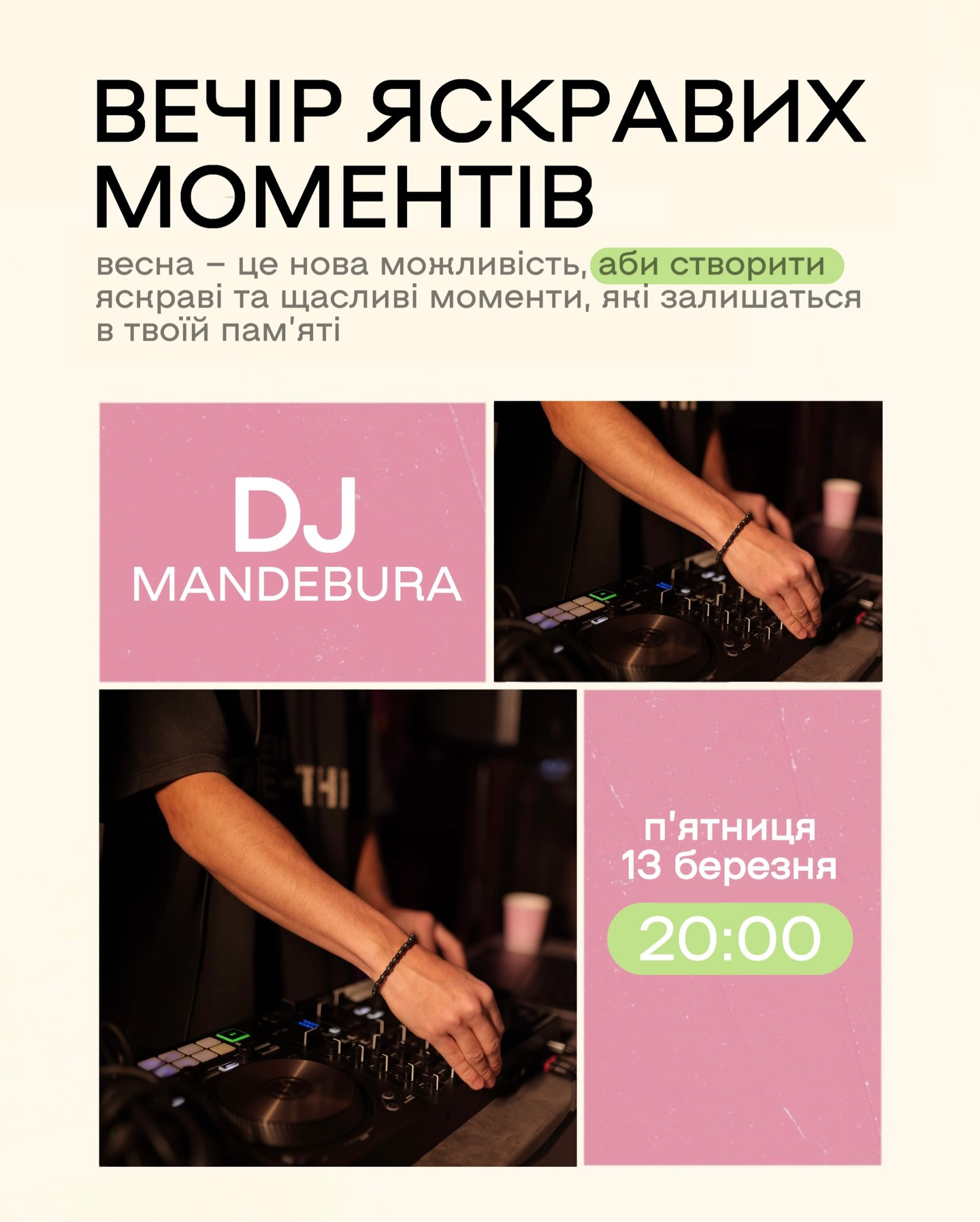 Запрошуємо Вас на вечір живої музики разом з Dj Mandebura. Зігріваємо живою музикою ці романтичні вечори. Лише ти, музика та твої особливі моменти.