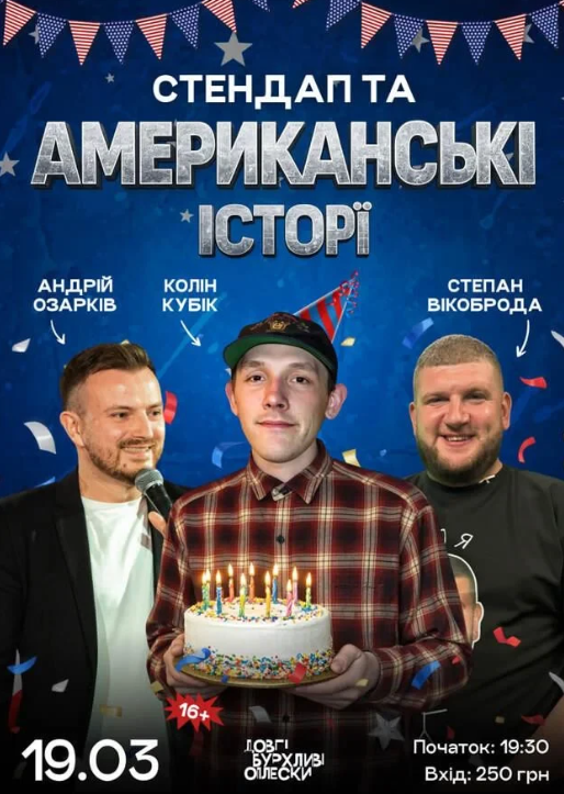 Шоу американських історій - це вечір реальних, дивних і трохи крінжових історій з життя. А ще ми святкуватимемо день народження Коліна Кубіка! Тут немає правильних відповідей - є тільки класні історії, жива реакція залу та багато імпровізації від Степана Вікоброди. А ще й стендап від Андрія Озарківа!