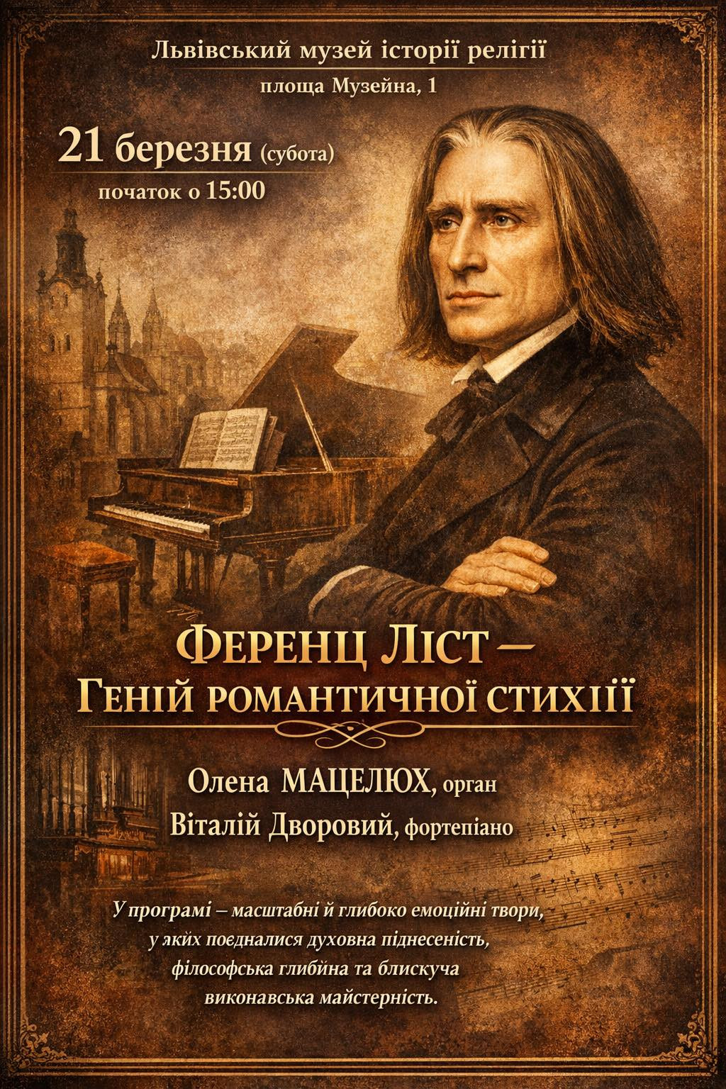 У Львівському музеї історії релігії прозвучить музика великого романтика Ференца Ліста.