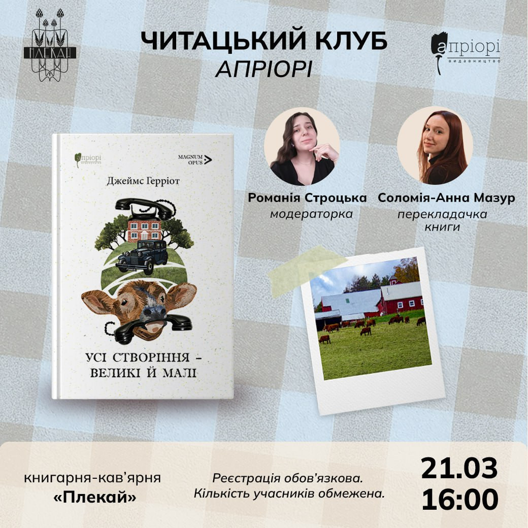 Читацький клуб "Апраорі". Обговорення книги "Усі створіння – великі й малі" Джеймса Герріота у місті Львів