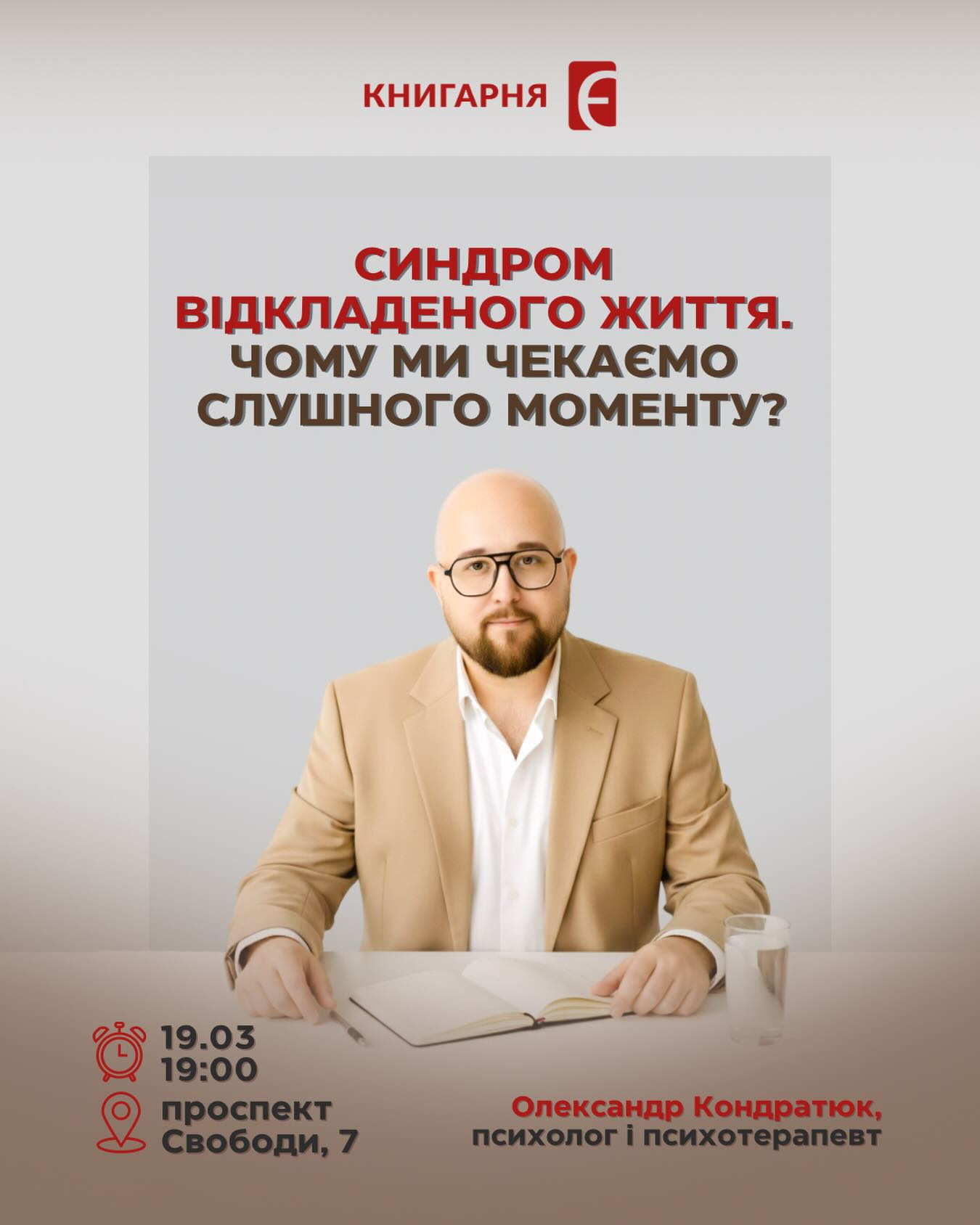 Розмова з психотерапевтом Олександром Кондратюком "Синдром відкладеного життя" у місті Львів