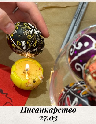 Писанкарство — це давнє українське мистецтво розпису яєць (писанок) за допомогою воску та барвників, що має глибоке символічне значення. Кожен орнамент і колір має значення: червоний — радість життя, жовтий — сонце, чорний — родюча земля, сосна — здоров'я.