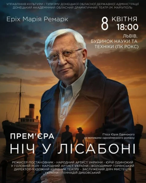 Ми знаємо сьогодні, як звучить сирена, як боляче від розлуки. Знаємо, що таке евакуація, як це - вціліти. Як важливо говорити, коли здається, що вже все сказано. Донецький театр (м. Маріуполь) - #ТЕАТРбезДАХУ - представляє одну із найсильніших історій XX століття. Еріх Марія Ремарк "Ніч у Лісабоні".