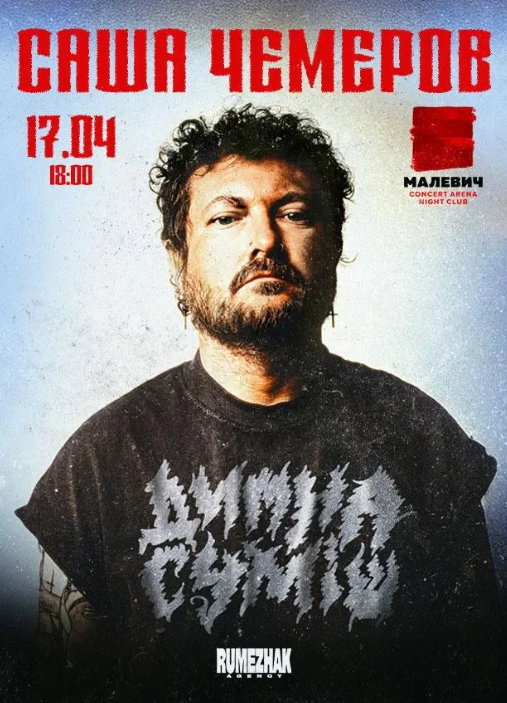 Не пропустіть повноцінне live-шоу від одного з засновників української альтернативної сцени! Саша Чемеров – не просто рок-музикант і продюсер, він – легенда. Якщо ви сумуєте за драйвом гурту "Димна Суміш", то цей концерт стане справжнім подарунком для вас. Це актуальна, жива музика, яку слухають на максимумі у навушниках чи за кермом та голосно співають хором у залі.