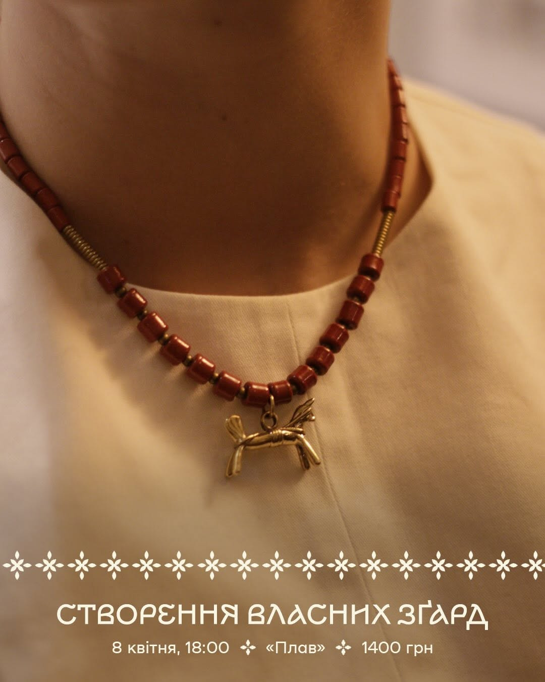 Запрошуємо на майстер-клас зі створення власних зґард. Це можливість власноруч виготовити традиційну гуцульську оберіг-прикрасу, поєднуючи металеві хрести, корали та кераміку.
