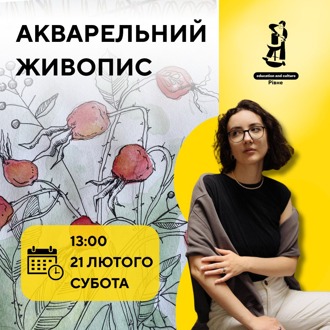 Запрошуємо дорослих на заняття з акварельного живопису з елементами графіки під менторством художниці Анастасії Мельник.
